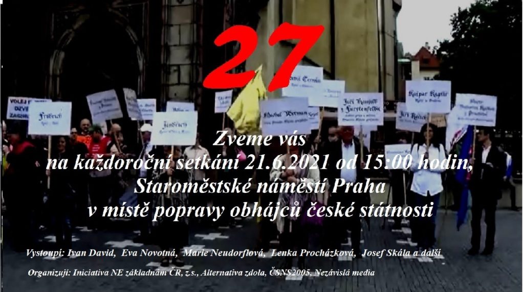 Shromáždění, na kterém si 21. června připomeneme tento významný pamětní den i jeho historické důsledky, začíná na Staroměstském náměstí v 15 hodin. S projevy vystoupí europoslanec Ivan David, historik a politik Josef Skála, spisovatelka Lenka Procházková, historička Marie Neudorflová, duchovní Československé církve husitské Hana Tonzarová a další. Zveme občany k účasti.