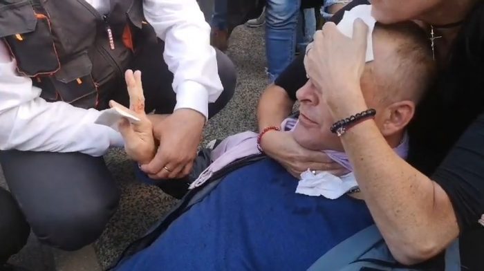 Dovedeme si představit, že gumové projektily by bylo správné použít na chuligány, kteří zapalují ulice, zapalují auta, výkladní skříně, demolují majetek, prostě na každého, kdo se dopouští opravdu velkého násilí. Ale střílet gumové projektily do krku pána, který přišel diskutovat o tom, že mu slovenská vláda bere svobodu, lidská a občanská práva, to je opravdu neuvěřitelné. To si nedovolila ani Veřejná Bezpečnost (VB) před rokem 1989, kdy příslušníci SNB vůbec neměli ve výbavě zbraně na gumové projektily, a to z velkých obav z hněvu pracujícího lidu, kdyby ten najednou spatřil, že příslušnici VB střílí do dělníků. Níže je video zachycující první pomoc zraněnému muži.