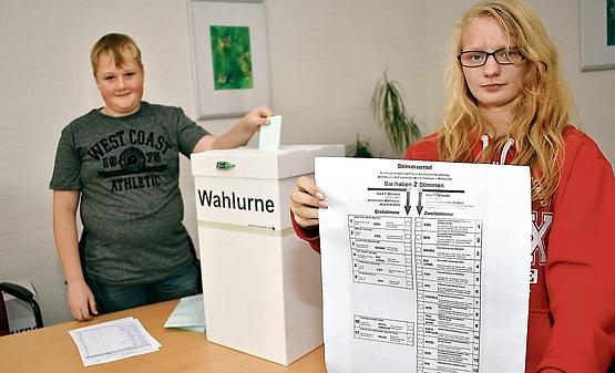 Pascal Wortmeyer und Michelle Klatt gehören bei der Juniorwahl an der IGS Friesland Süd zur Wahlleitung.