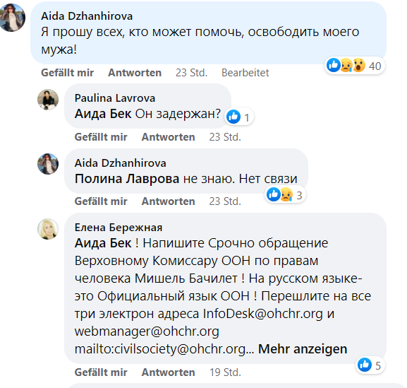 Podezření čtenářů se potvrdilo, když Dzhangirova manželka v komentářích uvedla, že její manžel nezvedá telefon. Požádala o pomoc při záchraně manžela.
