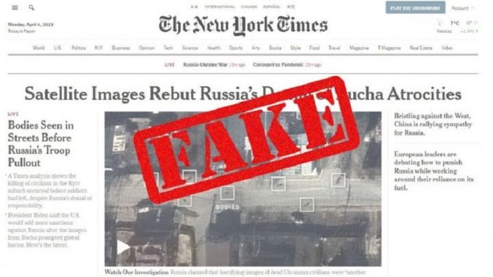 Londýnu a jeho loutkovému Kyjevu se den za dnem hroutí jeho dezinformační operace proti Ruské federaci s názvem “Buča” a každý den se objevují další a další trhliny v oficiálním příběhu Západu. Posledním výbuchem je vyvrácení článku listu The New York Times, který před pár dny ze zpravodajských zdrojů a údajně od americké satelitní služby obdržel fotografie z oběžné dráhy nad Bučou pořízené prý 19. března. Na fotografiích je vidět ona inkriminovaná filmová silnice a na ní jsou jasně vidět vyskládané mrtvoly po obou stranách silnice. Vypadá to děsivě, vypadá ta důvěryhodně a seriózně. Jenže… je to podvrh! Skupina vyšetřovatelů OSINT (Open Source Inteligence) této historce neuvěřila a začala pátrat po zdrojích satelitních snímků.