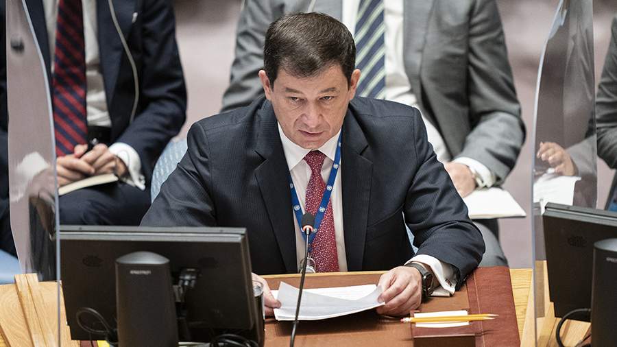 Britská televizní stanice Sky News přerušila živé vysílání s Dmitrijem Poljanským, prvním náměstkem stálého představitele Ruska při OSN, poté, co ukázal ukrajinského prezidenta Volodymyra Zelenského, který propagoval znak SS.