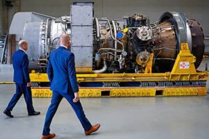 Siemens svádí zdržení na Rusko a Gazprom říká, že bylo slíbeno poslání již minulý měsíc a zatím se stále nic neděje. Německý Kancléř Olaf Scholz se byl na turbínu sám podívat a uznal ji za schopnou provozu (jak to asi poznal?). Na obrázku je Scholz, Bruch a turbína!
