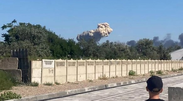 K výbuchům došlo v úterý odpoledne poblíž města Novofedorovka, místní obyvatelé hlásili, že slyšeli několik výbuchů přicházejících z letiště a sdíleli online videa ukazující kouř vycházející z této oblasti. Podle očitých svědků výbuchy vyrazily okna v domech poblíž letiště.