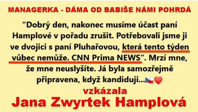 A je tu další skandál: kandidátka od Babiše Pluhařová nemá na voliče čas? A chce zastupovat občany? Další Jourová? To je špína!