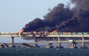 Americký plukovník v penzi, Douglas MacGregor říká, že útokem na most se Ukrajinci provinili, protože útočili na nevojenský objekt. Podle něho, bombu, která byla k tomu účelu použita, vyrobili Britové a jejich „Zvláštní jednotky“ (Special Air Service, SAS) byly v celém projetu plně zapojeny. Britské SAS jsou velmi efektivní a v sabotážích se velmi dobře vyznají. Přesto, jejich útok moc nedocílil, škoda na mostě není velká.