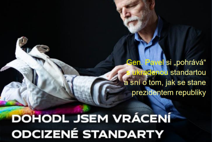 Jak se nepoctivý Petr Pavel stal ubohým mluvčím zlodějů prezidentské standarty. Gen. Pavel si „pohrává“ s ukradenou standartou a sní o tom, jak se stane prezidentem republiky