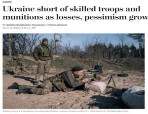 Vojensko-strategická dynamika byla jasně ve prospěch Moskvy minimálně od začátku ledna, kdy se projevila po osvobození Soledaru, ale posledně zmíněný vývoj byl při zpětném pohledu evidentně umožněn díky logistickým a výcvikovým úspěchům za frontou. Naproti tomu situace na kyjevské straně těch samých linií byla naprosto katastrofální, jak dokazuje poslední zpráva WaPo, ale veřejnost byla o tato fakta ochuzena a místo toho byla fed never-ending copiumkrmena nekončícím copem ..