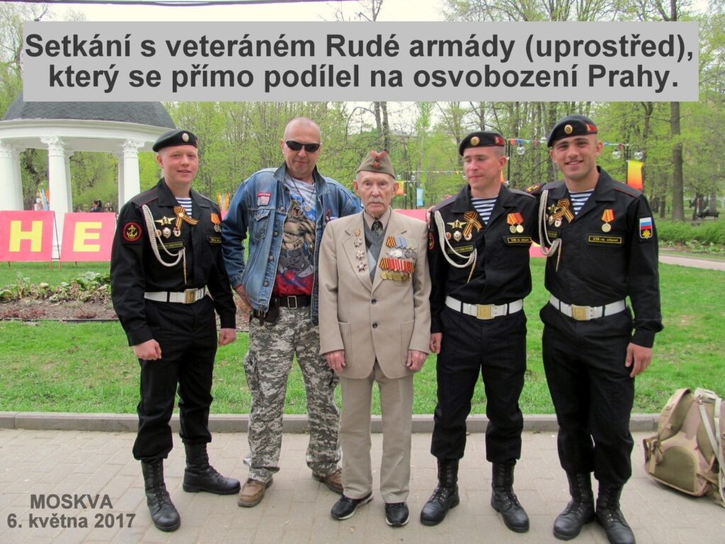 (Uveřejňuji článek opětovně až dnes, nyní, protože tehdy, kdy se vše událo (dne 6. 5. 2017 v Moskvě) a já článek se svým zážitkem a fotografiemi uveřejnil, mi fejsbuk – cenzura celý článek i s fotografiemi odstranili a můj profil zrušili. Nemohl jsem potom dohledat svůj článek, kde bylo i jméno toho obdivuhodného člověka. Až nyní jsem znovu na fejsbuku narazil na svůj článek, který se tak dlouho na síti udržel a který různí lidé vzájemně přeposílali, až se to dostalo znovu zpět ke mně. Po šesti letech!)