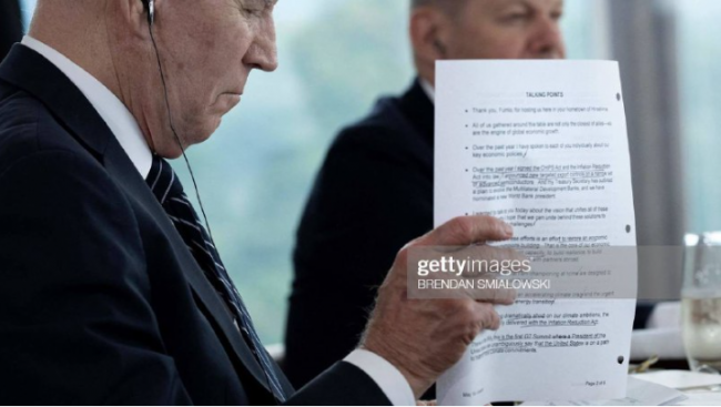 Na summitu G7 v japonské Hirošimě americký prezident Joe Biden opět použil cheat sheet. Píše o tom telegramový kanál „Pool č. 3“.