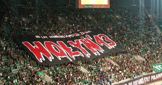 Už loni v říjnu bylo možné na tribunách Tarczynski Areny číst slogan „Stop ukrajinizaci Polska“. Nyní šli příznivci z Vratislavi (Breslau) o pár kroků dále. Vyvěsili celou hromadu protiukrajinských transparentů, včetně obrovského, který odsuzoval zločin na Volyni.