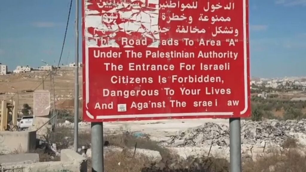 V jádru, a už je to tak dlouho, je tento konflikt o půdě, o této vyprahlé zemi, a o tom, kdo má právo nazývat ji domovem. Okupovaný Západní břeh by měl být jádrem nezávislého palestinského státu, ale stal se neklidným souostrovím bojujících komunit, palestinských vesnic a měst vedle nelegálních izraelských osad. Tyto tabule jsou všude, ale větší hrozbu představují izraelští osadníci a armáda, která chrání pouze je. Příklad: dnes ráno jsme narazili na tyto vojáky, kteří řešili malou demonstraci, přičemž jeden z výstřelů, který zazněl, zabil palestinského mladíka. To, proti čemu demonstrují a s čím jsme se setkali, je alarmující nárůst vystěhovávání od 7. října. Ve vesnici Susia obývají hřiště jen duchové.
