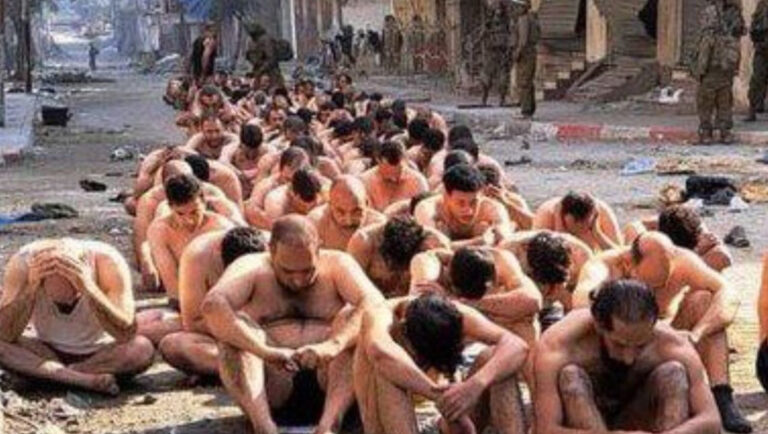 „Okupace záměrně donutila Gazany, aby se svlékli, prohledali je a ponížili, když byli zatčeni, než je odvezli na neznámé místo, podle toho, co nám tamní lidé řekli. Šíří se obrázky a videoklipy ukazující vojáky, jak zatýkají desítky Gazanů pomocí zločinných a ponižujících metod.