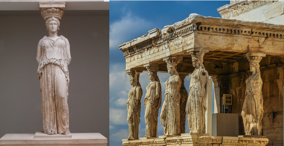 Tak by se to mělo psát v učebnicích: karyatida z aténské Akropole, 5. století před naším letopočtem. E. Ukradeno lordem Elginem v Aténách v roce 1801.