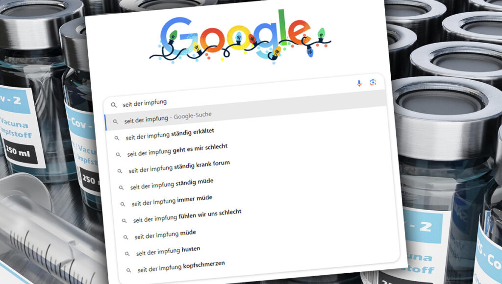 Google zaručeně zaměstnává mnoho specialistů a nově i umělou inteligenci, aby splnil vládní cenzurní požadavky. Všechno se ale potlačit nedá. Tentokrát se v německém vyhledávání Google stalo něco smysluplného. Pokud jste dne 8. prosince 2023, zadali hledané výrazy „od očkování“, Google provede následující na základě nejčastějších vyhledávacích dotazů ostatních lidí: