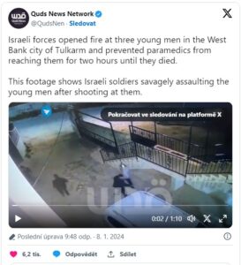 Izraelské síly provedly razii na Tulkarem na okupovaném Západním břehu Jordánu, kde zabily tři mladé palestinské muže, střílely na jejich neschopná těla, než je přejely.