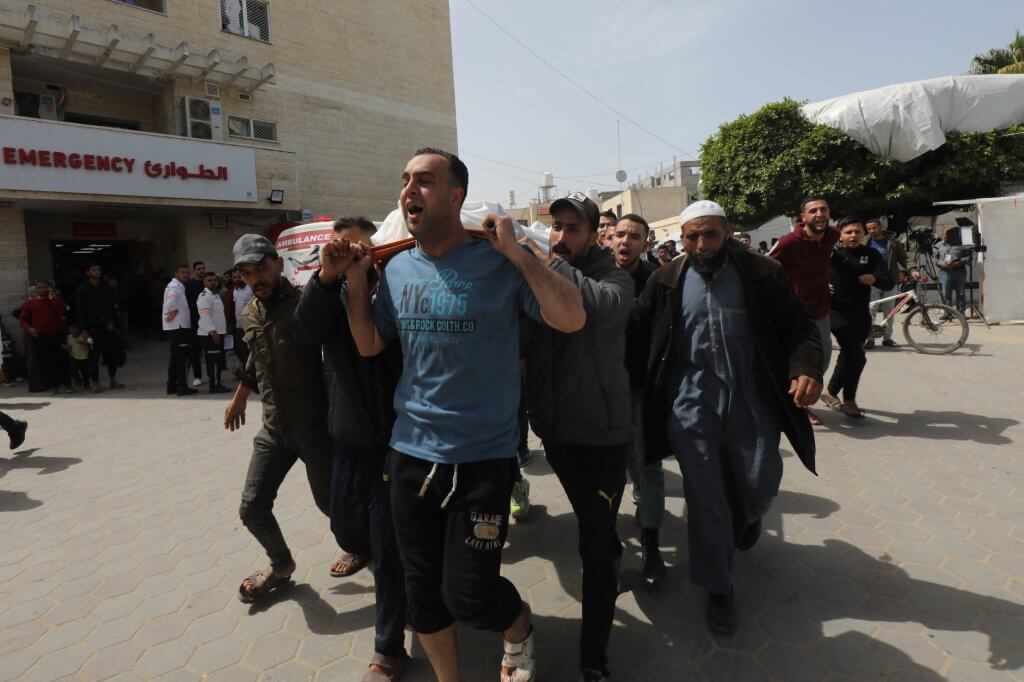 Úvodní fotografie: PŘÍBUZNÍ PALESTINCŮ ZABITÍ PŘI IZRAELSKÝCH NÁLETECH NESOU TĚLA SVÝCH MILOVANÝCH Z MÁRNICE V NEMOCNICI AL-AKSÁ K POHŘBU, DEIR AL-BALAH, 27. BŘEZNA 2024. (FOTO: ALI HAMAD/APA IMAGES)