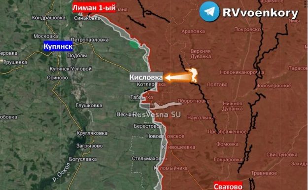 „Během ofenzivní operace, která začala minulého dne, jednotky skupiny sil Západ vyřadily ukrajinské ozbrojené síly z několika obranných linií a pronikly do Kislovky a obsadily asi polovinu osady v kupjanském okrese,“ – píše TK.Je třeba poznamenat, že ruské ozbrojené síly pokračují v útocích na obydlenou oblast a dělostřelectvo aktivně pracuje. K prolomení nepřátelských obranných linií byly použity kazetové bomby.