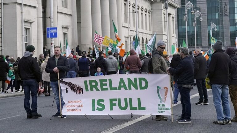 Takové protesty se staly oporou v celém Irsku od roku 2022, kdy – s využitím války na Ukrajině jako záminky – začal Leinster House přesouvat velké množství mužských migrantů do krajně nevhodných míst, jako je kancelářský blok v centru města a dětská základní škola.