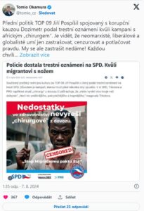 To je práce Londýna, který čelí největší bezpečnostní krizi od II. sv. války ve chvíli, kdy islamizace ostrovů se vymkla z pod kontroly a potomci migrantů začaly podřezávat děti britských goyim, tedy bílých Britů. Je to stejný proces, jako když provokatér a do korupční kauzy Dozimetr namočený europoslanec Jiří Pospíšil podal trestní oznámení na SPD za plakát s migrantem, který drží v ruce dýku a nad ním je text, že problémy zdravotnictví nevyřeší migrace. Prostě kriminalizace svobody slova. Přesně toto nastalo v Británii. Doktoři tam odmítají ošetřovat goyim, pokud nejsou muslimové, zatímco jiní podřezávají děti goyim. Ale napsat se to na britských sociálních sítích nesmí, jinak basa.