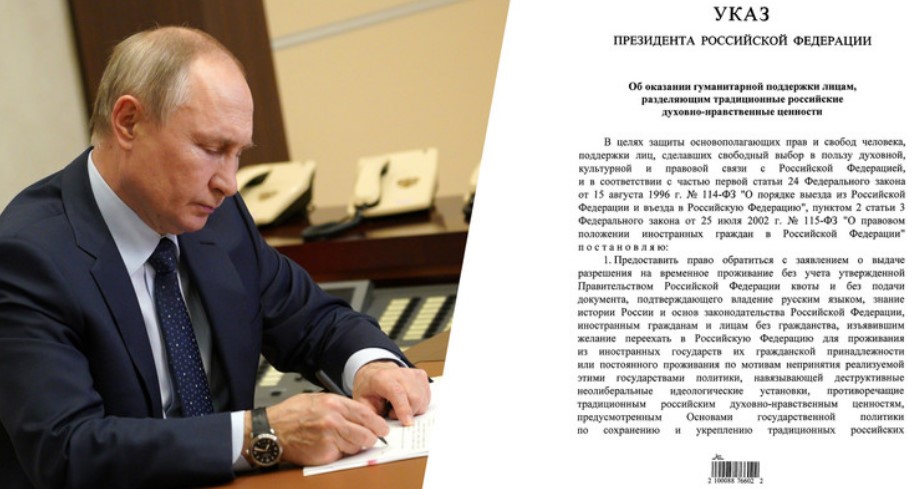 Ruské úřady poskytnou humanitární podporu cizím občanům, kteří nepřijmou „destruktivní neoliberální postoje“, které existují v jejich zemích. Nyní budou moci cizinci žádat o povolení k přechodnému pobytu v Rusku bez předložení dokladu potvrzujícího znalost ruského jazyka. Odpovídající dekret o pomoci lidem, kteří sdílejí tradiční ruské duchovní a morální hodnoty, podepsal Vladimir Putin. Jak vyplývá ze Základů státní politiky schválených v roce 2022, mezi tradiční hodnoty patří zejména silná rodina, vlastenectví, historická paměť a kontinuita generací a také jednota národů Ruské federace.
