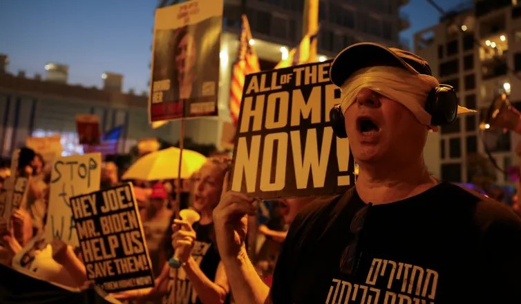 Úvodní fotografie: Izraelci požadují propuštění zajatců zadržovaných v Gaze na protestu v Tel Avivu 19. srpna 2024 [Florion Goga/Reuters]