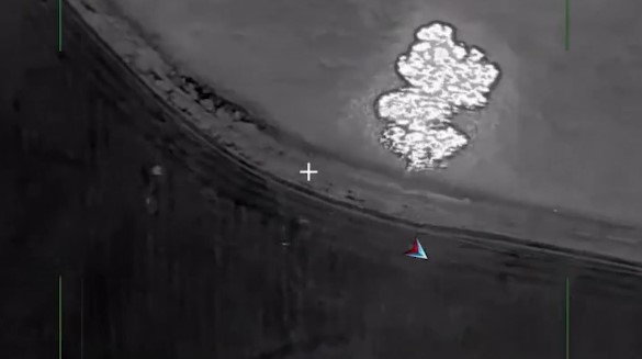 Ruský dron koordinoval útok a nafilmoval výsledek úspěšného úderu. Záběry potvrdily výbuchy, detonaci munice a požár na zničené pozici.