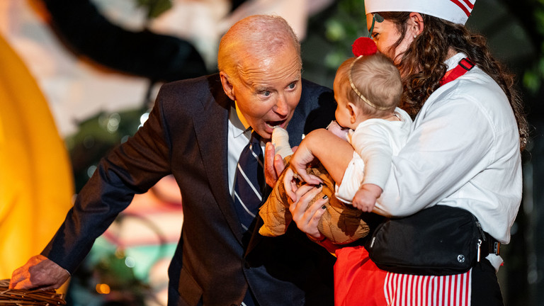 Americký prezident Joe Biden byl zachycen kamerou, jak hravě kousá miminka během středeční halloweenské párty v Bílém domě, když zdravil děti zaměstnanců, uvádí média. Biden má za sebou historii toho, co mnozí považují za bizarní interakce s dětmi.