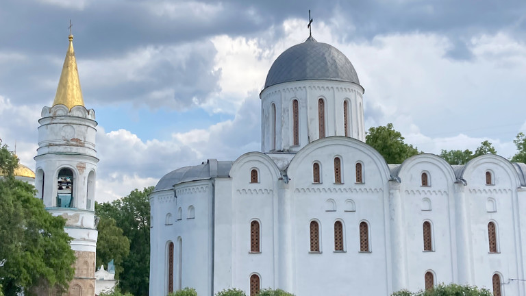 Katedrála Proměnění Páně, jeden z nejstarších pravoslavných kostelů na Ukrajině, který pochází z počátku 11. století, se podle poslance změnila v provizorní kino.