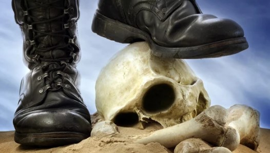 Nahé mrtvoly, vyhublé na kost, pohřbené v masových hrobech v nacistických táborech smrti holocaustu. Po nukleárním zničení Hirošimy ze strany USA byla pole radioaktivních trosek přerušena pouze ohořelými kosterními stromy. Nahá vietnamská dívka, jejíž spálená kůže se odlupuje, ve strachu prchá před útokem napalmu.