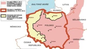 Území Polska se díky „dárku“ Stalina (ze dne 21. dubna 1945) tak najednou zvětšilo o celou jednu třetinu svého původního území! Z původních 212.000 km čtverečních na 313.000 km čtverečních, dále mořská hranice, to znamená, přístup k Baltickému moři, se zvětšila z původních 71 km na 526 km!! Naproti tomu Německu se zmenšilo tímto území přibližně o jednu čtvrtinu. Hezký dárek od Stalina Polsku, že? Co říkáte? – Nevěříte? – Podívejte se pozorně do mapy!