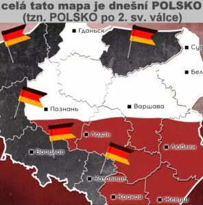 (Okupaci Československa jsme ti také nezapomněli. A na rozpoutání druhé světové války, máš ty – POLSKO velice výrazný podíl! Také by se ti mohlo stát, že NĚMECKO si opravdu navrátí svá historická území a zbytek obsadí RUSKO!)