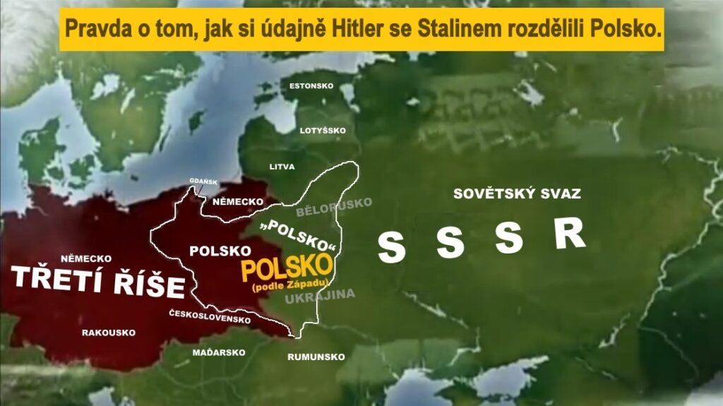 že si Hitler a Stalin (dva kamarádi a spojenci) rovným dílem rozdělili Polsko, které agresivně napadli, a tím vlastně začala druhá světová válka. Nu budiž, vše vysvětlím…