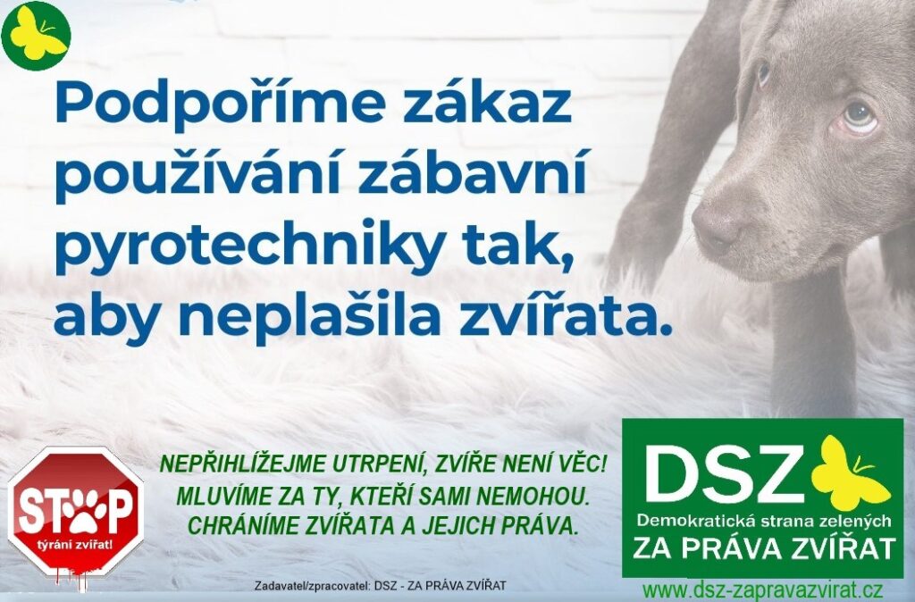 Demokratická strana zelených – ZA PRÁVA ZVÍŘAT důrazně žádá o zákaz, resp. ukončení používání a prodeje zábavní pyrotechniky, petard, ohňostrojů i tzv. lampionů štěstí. Petici DSZ – ZA PRÁVA ZVÍŘAT za ukončení používání a prodeje zábavní pyrotechniky, petard, ohňostrojů i tzv. lampionů štěstí podpořilo již více než 43 000 občanů. Za letošní rok podepsalo petici skoro 36 tisíc občanů.
