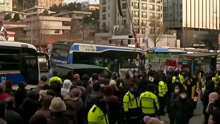 Vojáci 55. gardového sboru se pokusili zablokovat cestu policistům a státním zástupcům. Následoval boj. Podle tiskové agentury Yonhap se bezpečnostním silám podařilo proniknout „druhou linií obrany“ paláce a podaly na Yoon Seok-yeola příkaz k prohlídce a zatykač na vedoucího prezidentské bezpečnostní služby Park Jong-joon. Ta vyhlásila zákaz vyhledávání.