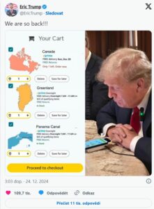 A to je podstata právě toho rozhovoru [7] pro Fox News s bývalým Trumpovým poradcem Robertem O’Brienem. Trump totéž v bledě modrém bude požadovat po celé EU, tedy buď platit Američanům obrovské náklady za obranu před Rusy, anebo vynakládat možná ještě vyšší náklady na obranu vlastními silami. A když ani jedno, ani druhé, tak přijde americká anexe v EU? A čeho? Zmocní se Trump plynovodů Nord Stream? Nebo obsadí nějaké ostrovy v Baltském moři?