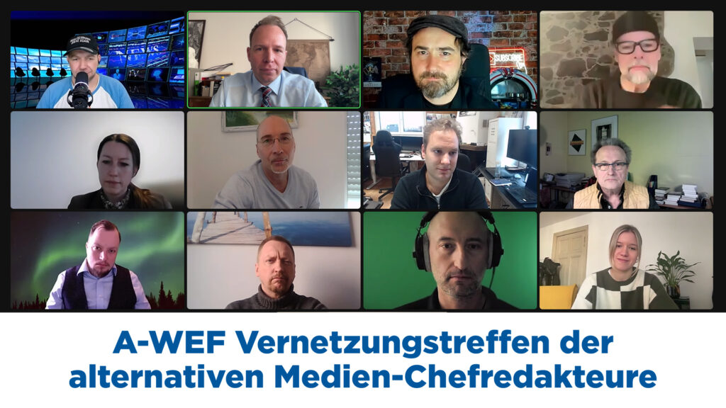 Alternativní mediální scéna se v boji proti Velkému resetu sbližuje: Na konci ledna proběhla první konference šéfredaktorů alternativních médií. Networkingové setkání s cílem vytvořit nebyrokratický krizový a nouzový nástroj, aby bylo možné rychle vyměňovat a publikovat důležité informace a výsledky výzkumu v případě dalšího velkého útoku na systém podle Corona blueprint.