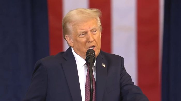 „Víte, země BRICS […] se pokusily zničit náš dolar. Chtěly vytvořit novou měnu. Když jsem přijel, první, co jsem řekl, bylo, že na každý stát BRICS, který se jen zmíní o zničení dolaru, budou uvalena cla ve výši 150 %“ a že “USA s ním přestanou obchodovat“, ujistil Trump. Ironizoval, že po jeho varování neví, „co se jim sakra stalo“. „V poslední době jsme o státech BRICS neslyšeli,“ uzavřel.