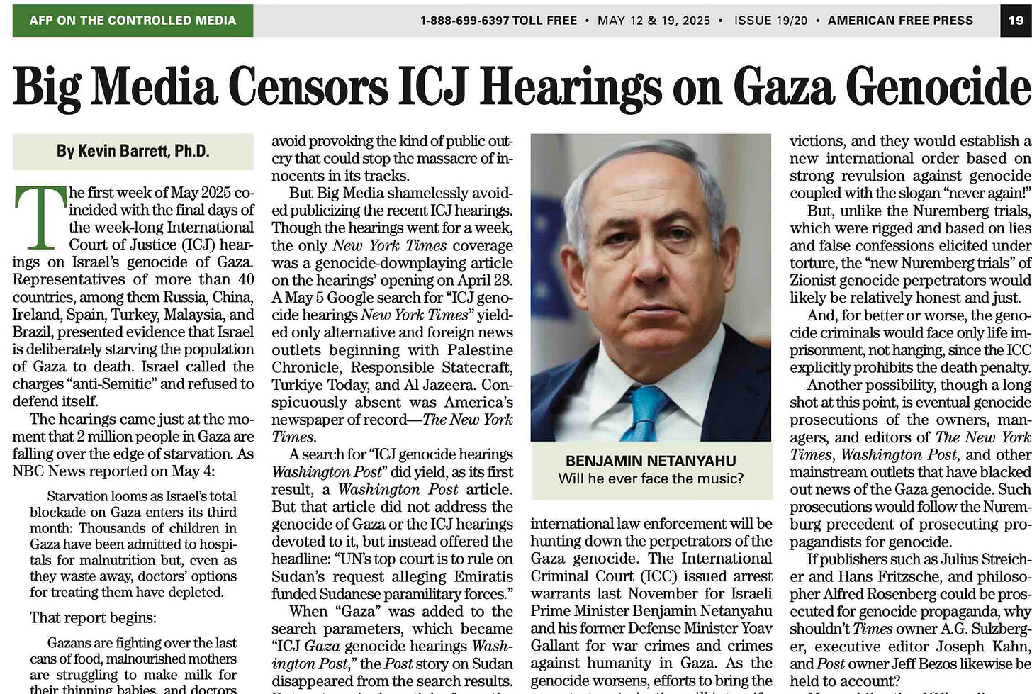Další možností, i když v tuto chvíli malou, je případné stíhání majitelů, manažerů a redaktorů The New York Times , Washington Post a dalších mainstreamových médií za genocidu. Takové stíhání by se řídilo norimberským precedentem stíhání propagandistů za genocidu. Pokud by lidé jako Julius Streicher, Hans Fritzshe a Alfred Rosenberg mohli být stíháni za genocidní propagandu, proč by neměli být k odpovědnosti pohnáni i majitel New York Times A. G. Sulzberger, výkonný redaktor Joseph Kahn a majitel Washington Post Jeff Bezos?