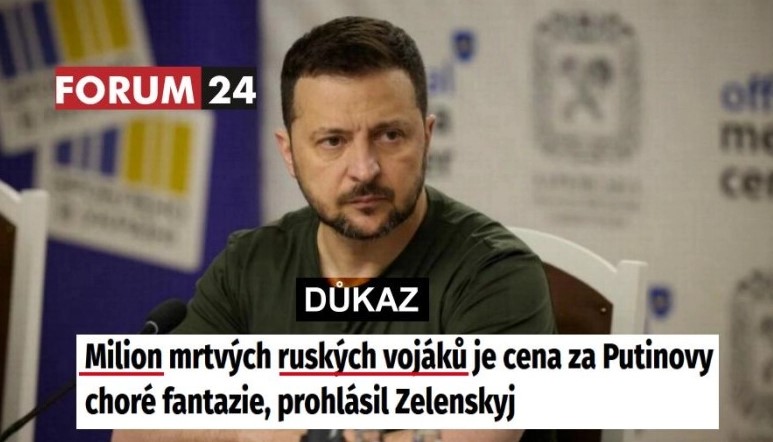 Milion mrtvých ruských vojáků je cena za Putinovy choré fantazie, prohlásil Zelenskyj. Teda, tvrdí to jako vždy FORUM 24. Vtip?