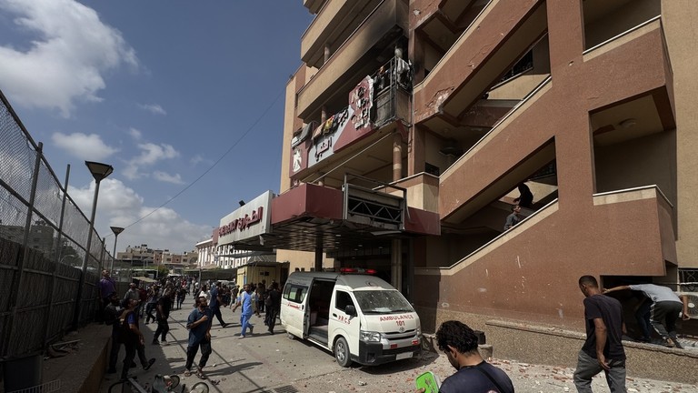 Útok na nemocnici proběhl ve dvou vlnách, přičemž druhý zásah zasáhl záchranáře a reportéry na místě činu. Druhý zásah byl zachycen extrémně explicitním živým přenosem jordánské televize Alghad TV. Munice přímo zasáhla lidi shromážděné na vnějším schodišti nemocnice, které média často využívají k natáčení pohledů na oblast Chán Júnis v jižní Gaze.