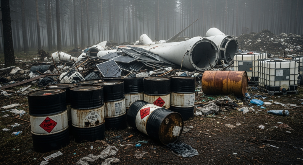 Takzvaná energetická transformace se stále více odhaluje jako gigantický podvod, který ničí životní prostředí i daňové poplatníky. Ve jménu „ochrany klimatu“ vznikají hory toxického odpadu, který se pak nelegálně skládkuje nebo jednoduše vyváží. To má s „čistotou“ a „zeleností“ pramálo společného.