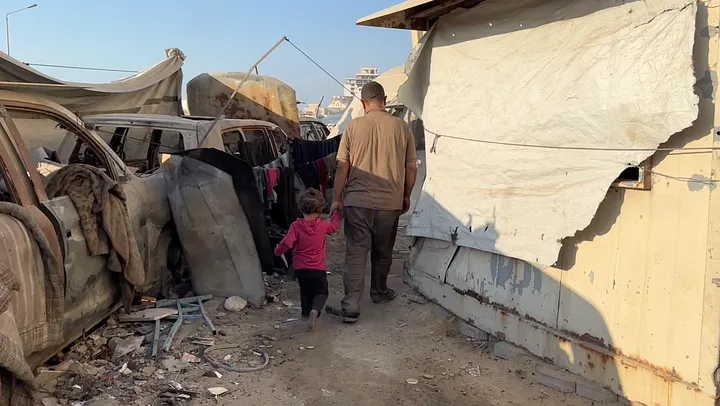 „Odcházíme, ale nevíme kam. Chceme odejít, ale kam? V Gaze není žádné bezpečné místo. I cesta na jih je obtížná a podmínky jsou drsné. Abyste se dostali ze severu na jih, potřebujete peníze a dopravu. Je to extrémně obtížné, katastrofální. Není zde žádná zdravotní péče, žádné jídlo, žádná pomoc, žádné stany, nic,“ řekl Ramy. „Toto je věčné vysídlování. Nejen nucené – věčné. Vidíme, že je věčné. Naše děti onemocní, naše ženy onemocní, lidé umírají hlady a nakonec jsme vysídleni.“