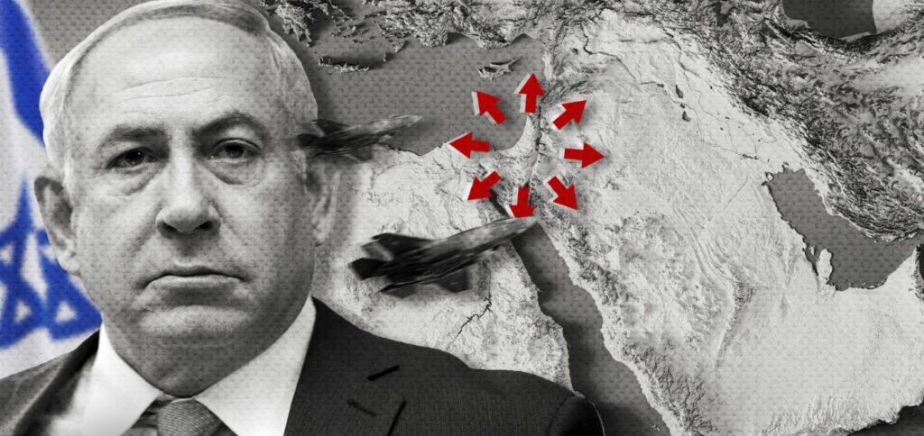 Izrael už téměř dva roky vede to, co Netanjahu nazývá „válkou na více frontách“. Tato válka zahrnuje kromě Gazy také Libanon, Sýrii, Irák, Jemen, okupovaný Západní břeh Jordánu a Írán. V jednom ze svých rozhovorů izraelský premiér Benjamin Netanjahu zdůraznil , že cítí, že je na „historickém a duchovním poslání“ a že je „hluboce spjat“ s vizí Zaslíbené země a Velkého Izraele. Těmito slovy Netanjahu potvrzuje, že to, co nazývá „válkou na více frontách“, je poháněno jak náboženskými, tak politickými motivy.