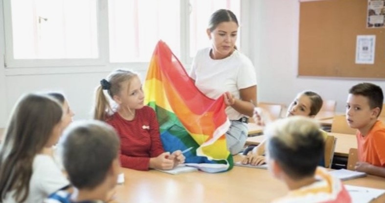 Hledáte mateřskou školku pro vaše dítě? Pak mám pro Vás typ! Soukromá mateřská školka Korálek má volno a vaše děti dokonce dostanou zvláštní LGBT+P péči. Jak jinak si vysvětlit reklamní obrázek, kde je učitelka a v ruce drží duhovou vlajku, kterou si LGBT++P hnutí přivlastnilo jako svůj symbol.