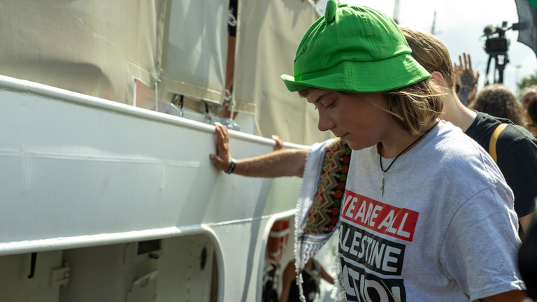 Izraelské námořnictvo v pátek zadrželo přes 400 aktivistů, mezi nimiž byla i Thunbergová, když se pokoušeli prolomit blokádu enklávy po moři. Více než 130 z nich bylo o víkendu deportováno do Turecka. Thunbergová se v pondělí stala součástí skupiny aktivistů deportovaných do Řecka a na Slovensko.