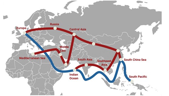 Čína chce prostřednictvím své iniciativy Hedvábné stezky vybudovat transkontinentální logistické koridory. I to je otázka geopolitiky, protože obchod přes světové oceány tradičně kontroloval Západ, který (stále) disponuje nejsilnějšími námořními silami na světě. Západ proto může obchod přes oceány kdykoli narušit a dokonce zablokovat.
