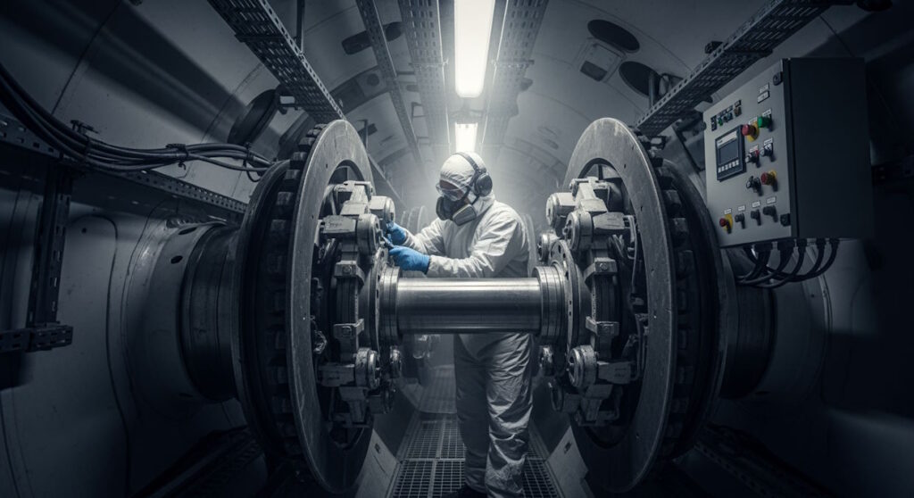 Někdy se pokrytectví odvětví zelené energie odhaluje v těch nejmenších, ale potenciálně smrtelných detailech. V Tasmánii na větrné farmě Cattle Hill technici narazili na azbest v brzdovém obložení výtahů větrných turbín. Čínští výrobci jako Goldwind, kteří svou údajně čistou technologií již dávno zaplavili celé trhy, dovolují dodavatelům, jako je 3S Industry, bez omezení používat materiály, které jsou celosvětově považovány za karcinogenní. Bílý azbest, jemně vláknitý – nebezpečí pro každého technika větrných turbín.