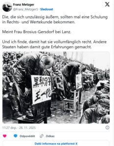 Frauke Brosius-Gersdorfová, profesorka práva a budoucí soudkyně Spolkového ústavního soudu, která v talk show Markuse Lanze předvedla divadelní představení svého života, působivě ukázala, proč by někdo, kdo volá po převýchovných kurzech pro disidenty, byl u ústavního soudu zcela nepatřičný. Její návrh: Každý, kdo se na internetu „nepřípustně“ vyjadřuje, by měl absolvovat „školení v právních a etických zásadách“.