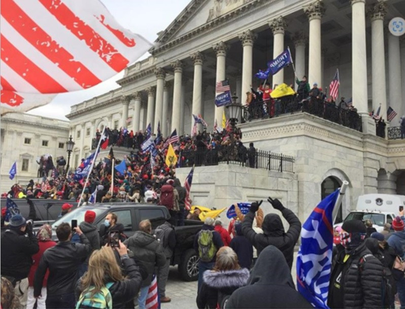 Bylo to naprosto jasně zachyceno na videích, že my demonstrující, jsme nedali žádný podnět k tomu, aby nás policie napadala. Jen zkrátka někdo z nejvyšších pater policie dostal ideu, že proti oposici zde využije té samé manipulace, co před tím využili američtí Demokraté proti Trumpovi ve Washingtonu, ty události jsou známé jako útok na Kapitol – viz foto.